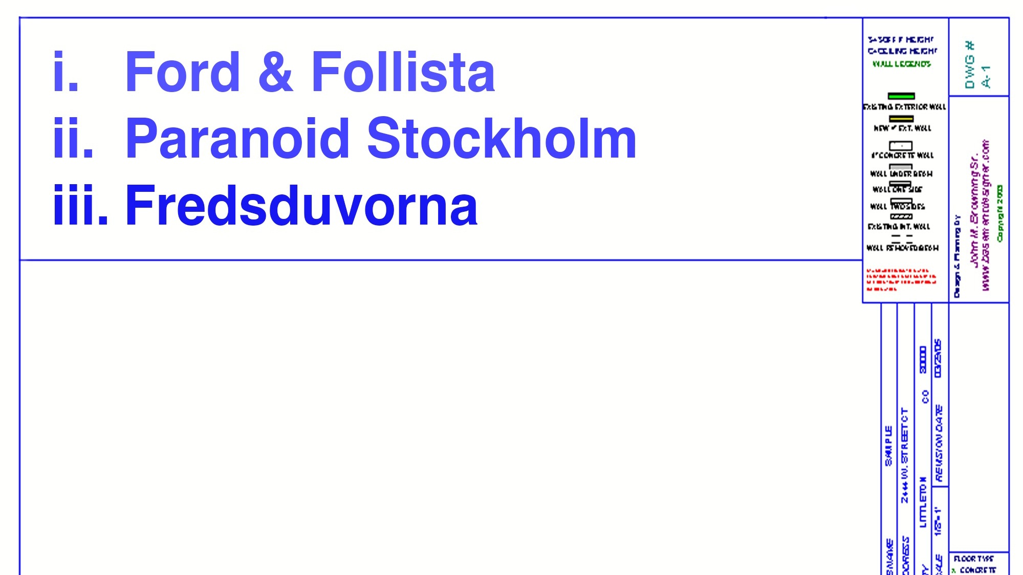 FORD & FOLLISTA, FREDSDUVORNA, PARANOID STOCKHOLM